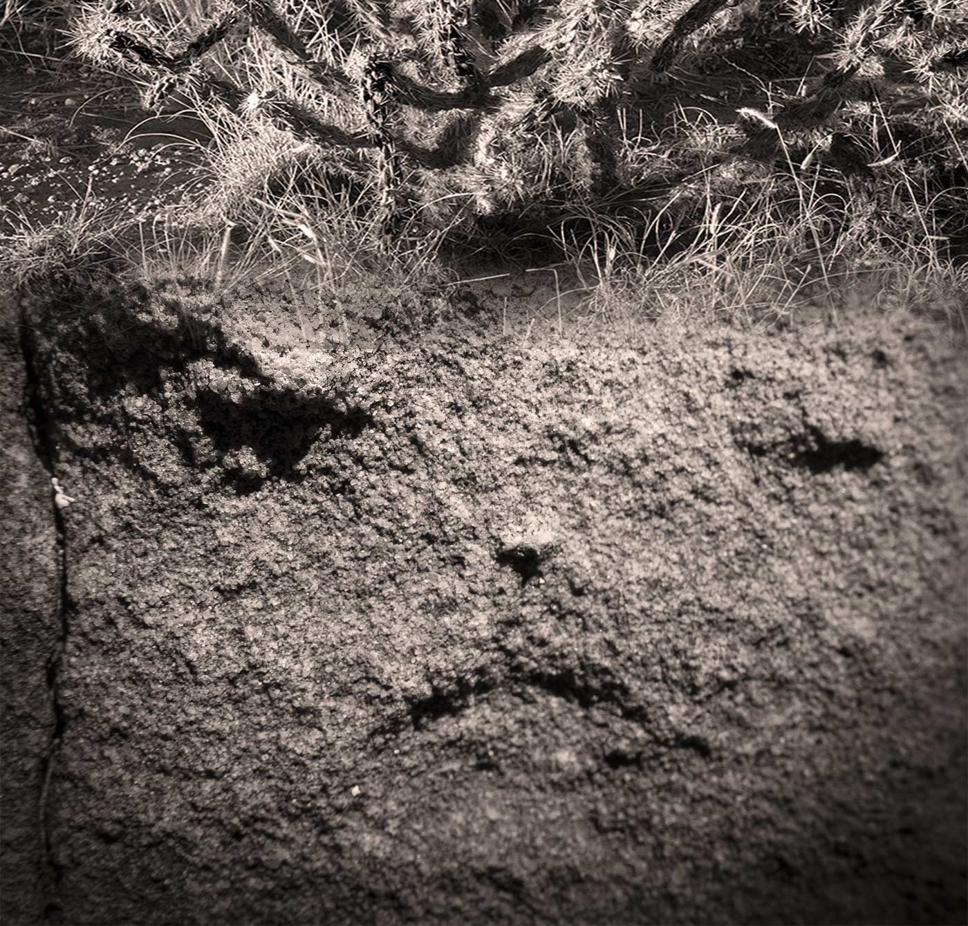 Out hiking one day, I came across this rock face. I’d been walking alone when I sensed something, or someone looking at me. So I turned around and there he was. The “hair” and “eyebrows” are part of the multiple exposure that just seemed to work with “him”. Most of these are done in-camera.